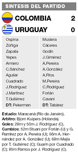 DEPORTES › COLOMBIA VENCIO 2-0 A URUGUAY Y SE CLASIFICO PARA LOS CUARTOS DE FINAL DEL MUNDIAL