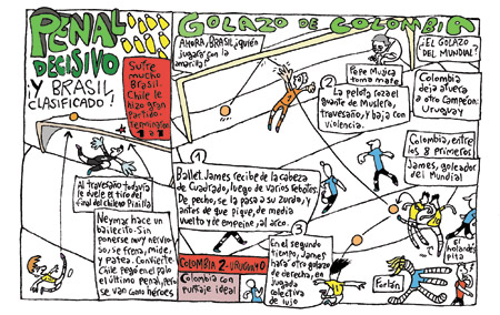 La producción de los colombianos en el lapso que va de los diez minutos del primer tiempo hasta el primer cuarto de hora del segundo dejó muy preocupados a los brasileños, que serán los próximos rivales en los cuartos de final. Están agrandadísimos los muchachos de Pekerman y tienen razones concretas: cuatro jugados, cuatro ganados sin demasiados sobresaltos y sin que asomara ni un poquito de la fama de pecho fríos. Los uruguayos se fueron cantando “Suá-rez, Suá-rez”, acaso como una excusa o una explicación por la derrota, pero no pueden negar que Colombia fue más y mereció quedarse con el pase a los cuartos. Lo que sí hay que lamentar es el sueño morboso de un Brasil-Uruguay en Brasil y por un Mundial, ya no se va a dar. Y que el fantasma del Maracanazo tuvo que hacer las valijas.