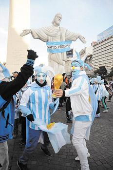 Los 117 minutos de angustia y el milagro del palo en tiempo cumplido del alargue necesitaban un desahogo colectivo. Y los hubo en todo el país. En la ciudad de Buenos Aires, el Obelisco fue el punto de referencia, con un festejo que hasta incluyó un remedo inflable del Cristo Redentor carioca. En plazas y lugares simbólicos de todas las provincias, las escenas se replicaron. Mucha bandera, mucha corneta, mucha vuvuzela. Casi todos, con camiseta y gorritos en celeste y blanco. En la Capital, la celebración no duró mucho: lo suficiente como para volver al trabajo sin que el jefe se enojara. Que a fin de cuentas, también es argentino.