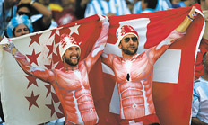 Arranca el partido. Los suizos son prolijos, ordenados, ¡un relojito, vea! y los nuestros atacan pero no sincronizan bien los movimientos y hay más de uno que necesita un despertador. El partido es malo, los dos saben que sus defensas tienen más agujeros que un queso gruyère (cinco les hizo Francia a los suizos) y tratan de no dar ventajas, pero los nuestros dan ventajas y los tipos resuelven como si pateara Blatter. El primer tiempo se va de largo sin goles.