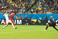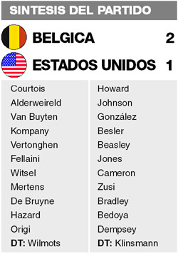 Un gol de Kevin de Bruyne en el minuto 93 quebró la resistencia del arquero estadounidense Tim Howard, gran protagonista de un partido en el que impidió durante muchos minutos que la superioridad belga se reflejara en el marcador. Romelu Lukaku pareció sentenciar a los 105m con el 2-0, pero al comienzo de la segunda parte de la prolongación el joven Julian Green recortó distancias y puso toda la emoción al partido.