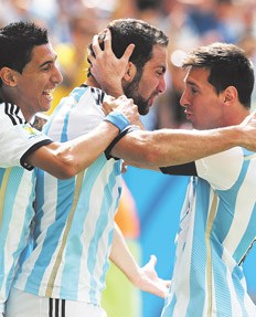 El anhelo de conseguir el tercer Mundial para Argentina en Brasil quedó más cerca gracias al gol de Higuaín, el primero que convierte en la Copa. “Estoy muy contento, más tranquilo, siempre dije que el gol iba a llegar. Igual me saqué una mufa terrible de encima. Cuando vi la pelota entrar sentí mucha felicidad”, destacó el jugador del Napoli, que remarcó la importancia del encuentro “para poder pasar a semifinales, un logro que no se daba hace mucho tiempo y conseguirlo es una felicidad enorme”, pero advirtió: “Nos faltan dos partidos para cumplir este sueño. Hay que ir partido a partido. Ya alcanzamos el objetivo de llegar a semifinales, ahora nos toca tratar de jugar la final”.