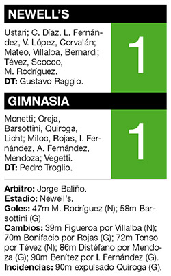 DEPORTES › NEWELL’S APENAS EMPATO 1-1 CON GIMNASIA EN ROSARIO