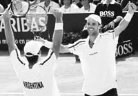 Todavía hay esperanzas. A partir de la victoria de Lucas Arnold y Agustín Calleri 6-3, 1-6, 6-4, 6-2 sobre Albert Costa y Alex Corretja, el equipo argentino de Copa Davis recuperó la ilusión de acceder a la final del torneo y, sobre todo, mejoró el aspecto anímico que estaba por el piso luego de la frustrante jornada del viernes. Con la serie 2-1 para España, el conjunto argentino necesita quedarse con los dos singles de hoy para concretar la hazaña. En el primer turno, a partir de las 6.30, Agustín Calleri o Mariano Zabaleta se medirá ante Juan Carlos Ferrero y, a continuación, Gastón Gaudio se enfrentará con Carlos Moyá, salvo alguna sorpresa que tiene guardada el capitán español, Jordi Arrese (ver aparte).