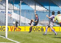 Por esa vía, el equipo de Gorosito estuvo cerca de aumentar la diferencia un par de veces, pero de todos modos el segundo tanto llegó tras un corner que primero cabeceó Diego Capria. Gonzalo Rodríguez corrigió la trayectoria del balón en el segundo palo para superar a Limia.
