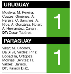 DEPORTES › URUGUAY Y PARAGUAY IGUALARON EN LA SERENA Y ESTARáN EN LOS CUARTOS DE FINAL DE LA COPA