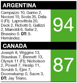 Progresión: Argentina 17-20, 46-42, 71-66 y 94-87.