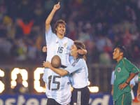 Argentina aflojó aquella presión en los últimos diez , buscaba con centros sin precisión en lugar de buscar por abajo, y Bolivia se soltó algo. Pero Argentina tuvo igual tres muy claras: dos de Crespo –una media vuelta y un cabezazo débil– y la mejor de Delgado, un mano a mano tras pase de Aimar que tapó Fernández.