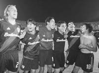 Recién sobre el final de la primera etapa el partido se animó un poco. Tardelli quedó habilitado, pero no supo definir y terminó regalándole la pelota a Tuzzio. Aprovechando los espacios que dejaba el local, River también tuvo dos ocasiones, ambas en los pies de Coudet. En la primera remató mordido y en la segunda se encontró con una excelente tapada de Rogerio. Sin jugar un gran partido, el equipo de Manuel Pellegrini sobrellevó ese primer tiempo sin demasiados contratiempos.