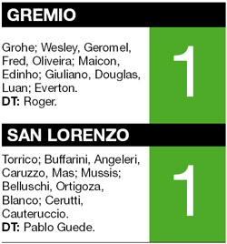 DEPORTES › SAN LORENZO EMPATó 1-1 CON GREMIO EN PORTO ALEGRE POR LA COPA
