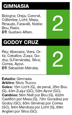 DEPORTES › GIMNASIA GANABA POR 2-0, PERO GODOY CRUZ REACCIONO Y SE LO EMPATO