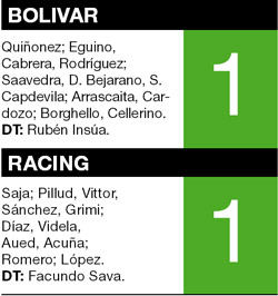 DEPORTES › RACING EMPATó 1-1 CON BOLíVAR Y SE CLASIFICó PARA LA SIGUIENTE RONDA