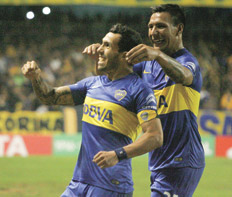El líder espiritual continúa siendo Carlos Tevez, que en otra noche gloriosa, que incluyó dos goles, aportó su fútbol claro y contundente para que las sorpresas no aparecieran por la Bombonera. El capitán fue inteligente para habilitar a su compañero mejor ubicado, y para controlar los tiempos con gran experiencia. Su segundo grito fue con dedicación exclusiva a otro gran goleador que miraba desde un palco, Martín Palermo, quien respondió con la aprobación lógica: Tevez tocó la pelota en la salida de un tiro libre, Lodeiro la paró, y el ex Juventus remató cruzado por arriba de la barrera para ubicarla al lado del palo.