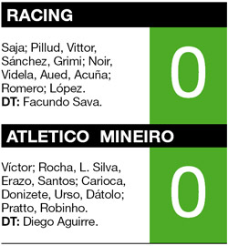 En la tarde-noche de Avellaneda, Racing arrancó su participación en los octavos de final de la Copa Libertadores con un empate sin goles ante Atlético Mineiro. El local hizo los méritos, pero le faltó contundencia. Mirando la formación que paró Sava en el arranque del encuentro se veía que había optado por un esquema que priorizara el equilibrio, aunque parecía demasiado cauteloso, muy similar al que llevó a La Paz para obtener el pase de ronda ante Bolívar. La intención era clara: aprovechar las características de Noir y Acuña, aptos para desplegarse por las bandas, abriendo bien la cancha, obligando al visitante a retener a sus marcadores de punta en una tarea únicamente defensiva. Todo motivado por un rival como Mineiro, elogiado también por su poderío ofensivo, a partir de la potencia de Pratto y la vigente calidad de Robinho.