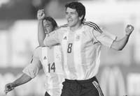 - El estratega. Bielsa había planteado ciertas dudas cuando eligió a Medina para hacer de doble cinco con Mascherano, sin utilizar a Domínguez como reemplazante del suspendido Clemente Rodríguez. Pero las dudas las despejó Lucho González, erigido en el cerebro del equipo. Despierto, la elegancia de su toque fue marcando el ritmo una vez que el conjunto –gracias a Medina y Mascherano– retuvo el control del medio. Lucho jugó e hizo jugar, y a su alrededor se animaron más Mariano González, por la izquierda, lo mismo que Ferreyra, imparable en sus subidas, y Delgado, tirado al medio o a la derecha, rotando con Tevez.