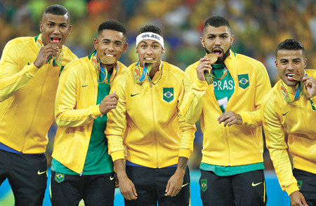 La Sub 23 brasileña, en lo más alto del podio y con la medalla que no había podido ganar hasta ayer.Brasil ganó ayer por primera vez el oro olímpico al vencer en definición por penales 5 a 4 a Alemania, tras empatar 1-1- en el tiempo reglamentario, una suerte de revancha del 7-1 sufrido ante los germanos en la Copa del Mundo 2014. Neymar, autor del tanto de la apertura del marcador, marcó el penal definitivo que le dio la medalla dorada de los Juegos de Río 2016 al equipo que mejor se preparó para ganarla, más allá de que en la cancha le costó mucho plasmar el favoritismo que tenía a priori, ante un equipo alemán sin figuras.