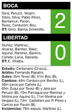 Los paraguayos salieron tan decididos a atacar en el complementario que se descuidaron atrás y Boca supo aprovechar su oportunidad. A los 51, Pavón habilitó a Peruzzi, que pasó por la derecha al fondo y mandó un centro bajo para que el debutante Bou –el otro, Centurión, hizo un buen segundo tiempo–, conectara en la puerta del área chica y estirara la ventaja. Enseguida, tras una buena maniobra individual, Tevez estuvo cerca del tercero. Los últimos minutos fueron para seguir viendo jugadores.