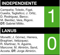 DEPORTES › INDEPENDIENTE VENCIó A LANúS POR 1-0 Y PASó A OCTAVOS