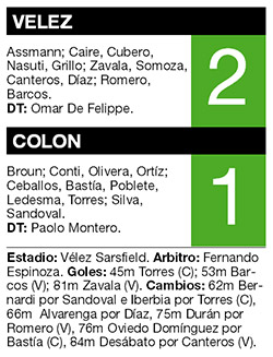DEPORTES › VELEZ PERDIA CON COLON PERO SE RECUPERO Y TERMINO FESTEJANDO