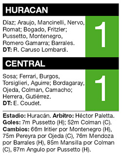 DEPORTES › HURACAN EMPATO ANTE LOS SUPLENTES DE CENTRAL Y SE COMPLICA CON EL PROMEDIO