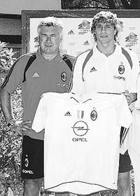 Junto al entrenador Carlo Ancelotti, que lo dirigió en el Parma, Hernán Crespo se sacó la foto con “la camiseta de los sueños”, la de su nuevo club, el Milan, que lo presentó ayer como su nueva incorporación. El atacante argentino llegó cedido a préstamo por el Chelsea y cobrará la tercera parte de lo que ganaba en el club inglés. “Me gusta mirar para adelante. Agradezco al Milan por darme esta espléndida oportunidad y debo admitir que no pude meterme de lleno en el fútbol de Inglaterra, pero no quiero polemizar con la gente del Chelsea. Llego para vestir la camiseta de los sueños”, agregó.