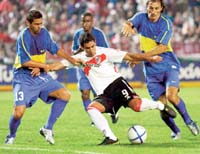 Costanzo; Ahumada, Gandolfi, Tuzzio, F. Domínguez; Patiño, Mascherano, Zapata, Sambueza; G. Fernández, Sand.