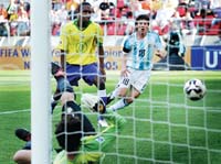 El Sub-20 jugó bien y por momentos fue claro dominador del encuentro, ayudado quizá por el gol tempranero de Messi, iban apenas 6 minutos de juego, que les cayó a los brasileños como baldazo de agua fría. Un golazo fue, desde más de 20 metros; un violento zurdazo que se clavó en el ángulo izquierdo. De Messi fue la jugada y la definición, y gran parte de la jerarquía que mostró ayer el conjunto argentino. Por eso no debe extrañar que Barcelona, dueño de su pase, se haya asegurado sus servicios hasta 2010, con una cláusula de rescisión de 150 millones de euros. Messi tiene 18 años y es una de las perlas del fútbol mundial.