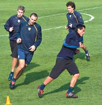 Marcelo Delgado encabeza el pelotón delante de Schiavi, Palermo y Barros Schelotto: después de la sanción que le impuso Boca (30 días sin goce de sueldo), ayer volvió a entrenarse con los profesionales. El colombiano Fabián Vargas acusó recibo del cansancio que le produjo a los jugadores la gira por Asia y Europa, aunque uno de los médicos del plantel boquense, Pablo Ortega Gallo, comentó: “Algunos jugadores sintieron el trajín, pero creo que no influirá en el futuro del equipo, pues antes se realizó una pretemporada”. Tras la práctica, el defensor Daniel Díaz comentó: “Va a ser un torneo difícil, pero esto es Boca y hay que ganar”.