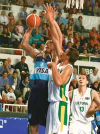 Sin embargo, dos triples casi consecutivos de sus dos goleadores habituales en el arranque del segundo tiempo le dieron a Argentina la posibilidad de disfrutar ocho puntos de ventaja. Con menos incidencia en el juego interior, Argentina apeló a los tiros exteriores para sostener una diferencia que oscilaba entre los cuatro y ocho puntos. Del otro lado, Lituania lastimaba con sus grandotes, aunque fallaban sus tiradores.