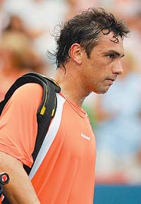 Mariano Puerta (foto) y Gastón Gaudio quedaron eliminados del Masters Series de Cincinnati. Puerta perdió 7-6 (7-2), 6-1 ante el local Robby Ginepri (58º). La gran diferencia estuvo en el servicio: Ginepri conectó 15 aces y castigó con winners (33 a 21) cada pelota que Puerta jugó sin profundidad, especialmente en el segundo set, cuando careció de potencia en sus golpes y de precisión cuando intentó jugar pelotas sin peso o con ángulo. Por su parte, Gastón Gaudio cayó ante el español Tommy Robredo por 2-6, 6-3 y 6-3, mientras que José Acasuso venció 6-3, 6-2 al marroquí Younes El Aynaoui. Hoy jugarán Guillermo Coria (ante Luis Horna), Juan Chela (con Tim Henman) y David Nalbandian (frente a Fernando González). En Toronto, Mariana Díaz Oliva venció 3-0 y abandono a la rusa Evgenia Linetskaya, pero María Emilia Salerni perdió 6-3, 6-4 ante la china Jie Zheng.