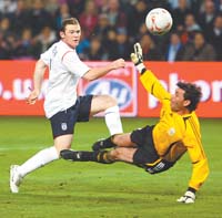 El criterio de Riquelme y Cambiasso para manejar la pelota y las subidas de Zanetti por el sector derecho eran las mejores armas de la Selección que, en cada llegada, parecía más cerca de abrir el marcador. Robinson le ahogó el grito a Maxi Rodríguez y después Leuba le anuló un gol de cabeza, Crespo, por supuesta infracción contra Ferdinand.