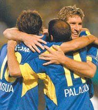 Bernal; Castro, M. Palacios, Beltrán, Pineda; Galindo, Verón, Augusto, Aílton; De Nigris, Marioni.
