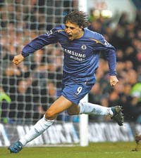 Faltaban 16 minutos para terminar el partido entre el Chelsea, líder de la Premier League inglesa, y el Fulham, que estaba sacando un empate casi milagroso frente al puntero, después de ir perdiendo 2-0, cuando llovió el centro de Joe Cole sobre el área del equipo del suburbio londinense. Apareció entonces la volea providencial de Hernán Crespo, que ayer fue titular, para clavar un bombazo en el arco de Jaroslav Drobny. Después del festejo (foto), el delantero de la Selección fue reemplazado por Geremi. Con la victoria, al completarse la 18ª fecha, el Chelsea suma 49 puntos, nueve más que su inmediato perseguidor, el Manchester United, que venció 3-0 al West Bromwich. El Liverpool superó 2-0 a Newcastle mientras que el Arsenal venció 1-0 al Charlton Athletic. Los otros resultados: Tottenham 2, Birmin- gham 0; Middlesbrough 0, Blackburn 2; Portsmouth 1, West Ham 1; Sunderland 0, Bolton 0; Wigan 4, Manchester City 3; Aston Villa 4, Everton 0. Las posiciones: Chelsea, 49 puntos; Manchester United, 40; Liverpool, Tottenham, 34; Bolton, Wigan 31; Arsenal, 29.