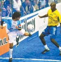 “Ya estoy en Alemania, ya me saqué el pasaje.” Diego Maradona sonreía después del 7-7 contra Brasil, el sábado en el partido de showbol jugado en Obras Sanitarias y se prestó a una charla, de la que participó Página/12, en la que habló un buen rato sobre la actualidad de la Selección, reiteró cuáles son los jugadores que le gustaría ver en el conjunto dirigido por José Pekerman, remarcó que irá en junio próximo a Alemania aunque la FIFA “no me invite” y no descartó la posibilidad de presenciar el partido entre Angola y Argentina que se disputará el próximo 31 de mayo ante Angola, en Italia.
