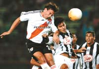 River arrimó peligro con un remate desviado de Santana y luego Farías, en dos ocasiones, puso en alerta al fondo paraguayo con dos cabezazos tras un par de tiros libres de Montenegro. Cuando se jugaba el primer cuarto de hora, la presión de River ya no era la misma del principio, aunque se las rebuscaba para inquietar con algunos centros. Farías tuvo otra chance, pero su remate se fue débil y desviado junto al palo izquierdo.