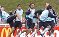 “No lo pude ver”, se lamentó Javier Saviola sobre la presencia de Batistuta, que luego de charlar con algunos dirigentes, el cuerpo técnico y compartir unos mates con los jugadores, se retiró por una puerta lateral para no hacer declaraciones debido a que está contratado con exclusividad por una cadena mexicana. “Siempre lo tuve como referente”, indicó el ex delantero de River, que, junto con el capitán Juan Pablo Sorin, fue uno de los jugadores elegidos para la conferencia de prensa. Y si bien no confirmó su titularidad, los reparos que puso a lo largo de la charla resultaron tan tibios, que ya no quedan dudas de que le ganó la pulseada a Carlos Tevez en la lucha por acompañar a Crespo. “Formamos una dupla que se entiende bien. Siempre tuvimos buenos partidos. Nos entendemos y tenemos que ser contundentes. En un mundial hay que aprovechar al máximo cada una de las ocasiones que se nos presente. Son todas defensas muy rápidas y fuertes, que no dejan muchas oportunidades”, sintetizó el delantero de Sevilla.