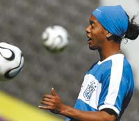 Parreira espera que juegue con la misma alegría que en el Barcelona: “Necesitamos a ese Ronaldinho, al de la sonrisa en la cara, porque eso será bueno para el juego de Brasil”. Es la misma sonrisa que le reclamó Lula, el presidente de Brasil. Le ganó la final de play-station a Emerson. Uno manejaba al Arsenal y el otro, ¡al Valencia! Por si no fuera poco su ascendente en el grupo, dicen que Ronaldinho también ha ganado el campeonato de ping-pong a sus compañeros. Una máquina de generar buen clima. Ante tales perspectivas, y viendo lo fino que está, es lógico que se espere lo máximo de Ronaldinho, que hoy llega a Berlín con la Selección y a quien el propio Maradona ha señalado como candidato a ser el mejor jugador de este Mundial.