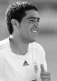 DEPORTES › RIQUELME EXHIBE SU FELICIDAD A CADA PASO