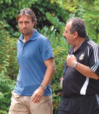 El goleador histórico del seleccionado argentino, Gabriel Batistuta, visitó ayer por la mañana la concentración argentina en Herzogenaurach, para demostrale su apoyo al plantel. “Vine antes para desearles suerte a los muchachos y ahora para acompañarlos. Están todos muertos, nadie puede estar contento”, expresó Batistuta al salir de la Hotel HerzogsPark. Además, indicó que “no hay nada que decir, creo que la compañía alcanza. Este equipo dejó todo y ofreció un muy buen fútbol en algunos partidos”.