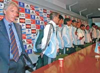 El ¿ex? entrenador de la Selección Argentina atendió a la gente en la puerta de su casa, en Martín Coronado, e insistió en que su ciclo está cumplido. “El fútbol es rendimiento más resultados, y nosotros teníamos un plan para jugar siete partidos que no cumplimos”, aseguró. Grondona quiere hablar, pero...