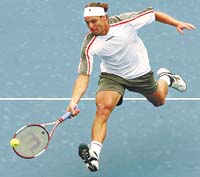 En tanto que el encuentro que debía jugar, en el último turno, el cordobés David Nalbandian (4º) ante el ruso Marat Safin, por la segunda ronda, fue suspendido por lluvia, que amenaza también el desarrollo de la sexta jornada del certamen.