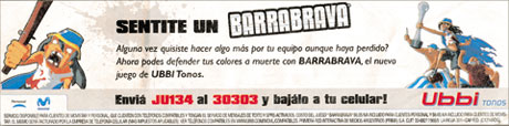 El juego se llama “Barrabrava” y propone “defender tus colores a muerte”. El aviso publicitario aparecido en el diario Olé el miércoles 6 incluye la viñeta de un personaje desdentado, con gorrita, manchas de sangre en una camiseta desgarrada, blandiendo un garrote del que sobresale un clavo. Una auténtica invitación a partirle la cabeza a un hincha de un equipo rival, a generar violencia, aunque el juego sea virtual. En el diario de ayer, en cambio, el aviso no fue publicado: su ausencia coincidió con la denuncia penal que el subsecretario de Seguridad en Espectáculos Deportivos, Javier Castrilli, radicó ante la Justicia por “apología del crimen”.