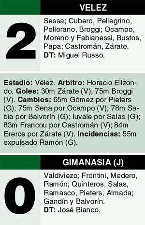 DEPORTES › VELEZ SE IMPUSO 2-0 A GIMNASIA DE JUJUY Y QUEDO TERCERO