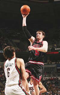 Andrés Nocioni (foto) se convirtió en el goleador de Chicago en el triunfo 99-90 sobre Milwaukee, en una nueva jornada de la NBA en la que San Antonio cayó 100-96 ante Los Angeles Lakers. El santafesino fue el valor más destacado de los Bulls al conseguir 21 puntos en los 27 minutos que estuvo en cancha, con 6-7 dobles, 2-4 triples y 3-3 libres. Su planilla se completó con cuatro rebotes y dos asistencias. En tanto, en la caída de los Spurs, Ginóbili completó un buen juego, con 16 puntos en 31 minutos, gracias a 3-5 dobles, 1-3 triples y 7-8 libres. Además tomó seis rebotes y dio tres asistencias. Por su parte, Fabricio Oberto marcó dos puntos (1-4 dobles, 0-2 libres) y capturó ocho rebotes en 19 minutos.