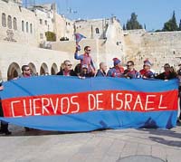 Un grupo de hinchas de San Lorenzo, integrantes de la Pislaba (Peña Israelí San Lorenzo de Almagro Beto Acosta) concretó el sueño de ir en caravana al Muro de los Lamentos (foto) para pedir por una buena campaña del ahora equipo de Ramón Díaz en el próximo torneo Clausura. El singular hecho, que se llevó a cabo la semana pasada, fue reflejado hasta por la televisión local, que se sorprendió por los alocados gritos de los hinchas sanlorencistas, que durante la trayectoria fueron confundidos con simpatizantes del Barcelona. Sin embargo, al grito de “Dale Ciclón” consiguieron concretar su objetivo.