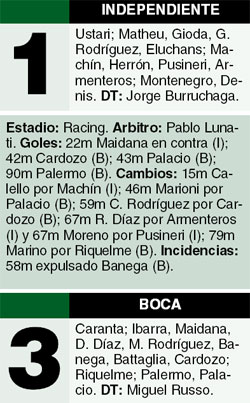 DEPORTES › BOCA PERDIA 1-0, PERO LO DIO VUELTA Y VENCIO 3-1 A INDEPENDIENTE EN LA CANCHA DE RACING