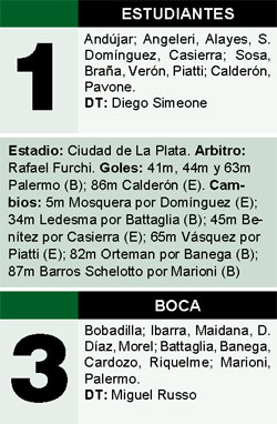 Distinta fue la historia en la segunda parte. Es que a partir de la ventaja y a favor de la desesperación de Estudiantes, el conjunto de Russo empezó a manejar el trámite y a justificar la diferencia. Entre Banega y Riquelme sostenían la pelota con inteligencia y los delanteros seguían generando riesgo. Hasta que un mal despeje de la defensa de Estudiantes derivó en una pelota bombeada que Palermo transformó en gol con un zurdazo violento al primer palo. Allí se acabó el encuentro, más allá del descuento de Calderón tras un rebote que dio Caranta.