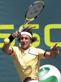 Juan Mónaco derrotó 6-4, 6-4 al holandés Robin Haase antes de que la lluvia apareciera por segunda vez durante la primera jornada en el Masters Series de Miami, y se convirtió en el primer adversario del español David Ferrer, decimotercer favorito. El jugador de Tandil, de 22 años, que viene de ganar el ATP de Buenos Aires, no tuvo problemas para deshacerse de Haase, un rival de menor categoría, cuyo servicio apenas lo inquietó.