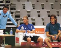 El capitán madura la posibilidad de formar un dobles con Nalbandian y Del Potro, o con el cordobés y Prieto, y hasta considera la variante de incluir a Cañas, pero esa decisión la tomará recién mañana por la tarde, tras los dos primeros puntos, en un juego táctico y estratégico que suele utilizar el capitán argentino.