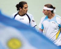La ajustada definición significó un envión para los locales y un claro retroceso para los visitantes. Porque, a partir del tercer set, los argentinos bajaron su nivel –sobre todo con su saque– y semejante ventaja en este tipo de superficies fue aprovechada por el conjunto sueco con un prematuro quiebre sobre el servicio de Nalbandian. El cordobés, muy irregular en ese trayecto del partido, evidenció problemas desde el saque y lo volvió a ceder en otras dos ocasiones. Sin respuestas, la dupla argentina se convirtió en un testigo privilegiado del notable rendimiento de los europeos. Bjorkman, rápido para moverse en la red y cerrar los puntos, y Johansson, efectivo con su saque, desplegaron su mejor reportorio durante el tercer y cuarto sets y sellaron un contundente triunfo contra todos los pronósticos. “Es un placer para mí jugar la Davis y mi sueño es ganarla alguna vez, espero poder cumplirlo. Di lo mejor y no alcanzó, siento bronca e impotencia”, admitió Cañas. “Es un sueño ganar la Davis y no tengo dudas de que podemos hacerlo. Sólo necesitamos algo de suerte en el sorteo y que no suframos inconvenientes, como la lesión de Cañas. Pero no me doy por vencido y el año próximo intentaré una vez ganarla”, señaló Nalbandian. Aunque los capitanes no confirmaron los singles de hoy, Sebastián Prieto chocaría ante Robin Soderling y Juan Martín del Potro jugaría frente a Jonas Bjorkman o Robert Lindstedt.